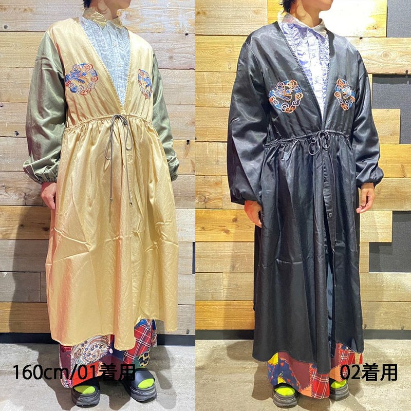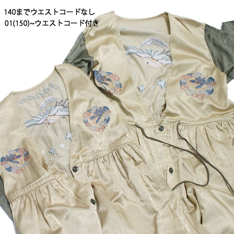 01サイズからウエストに紐がつくのでウエストマークして着ていただけます。