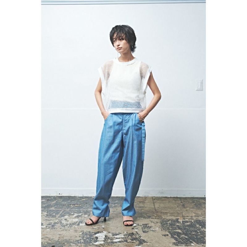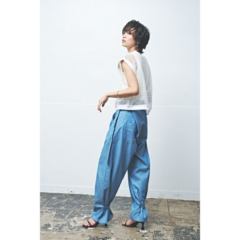 “ムウナ”のネップデニムミドルワイドパンツ