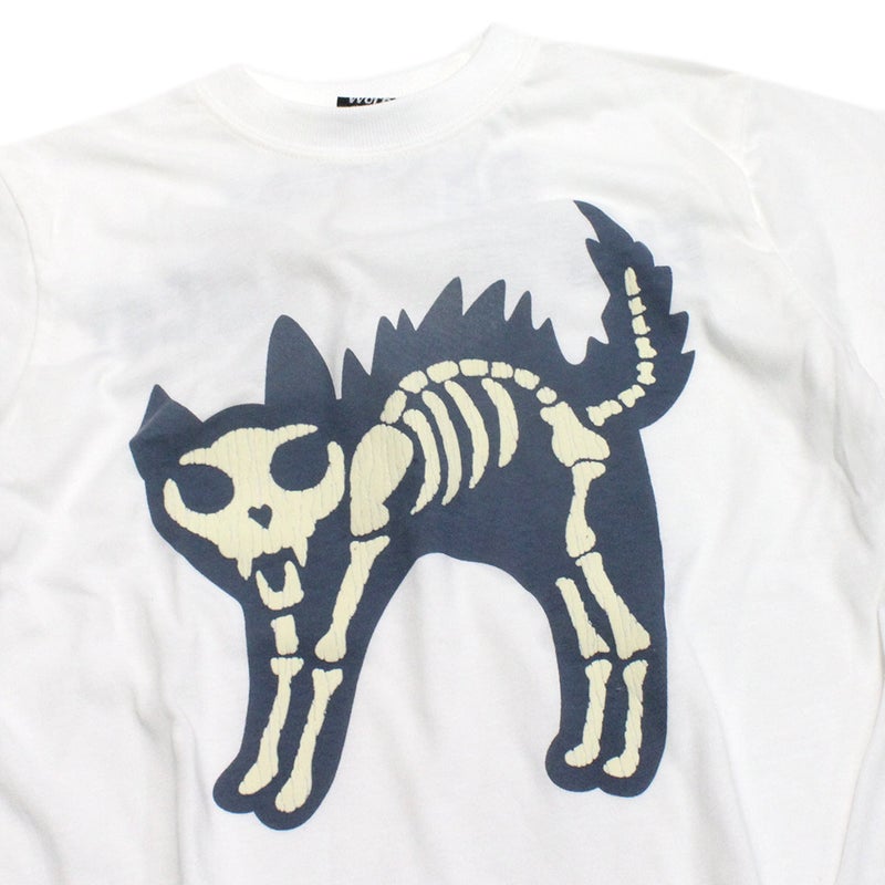 [ニードルワークス] T/C天竺感電猫蓄光プリントTシャツ ホワイト