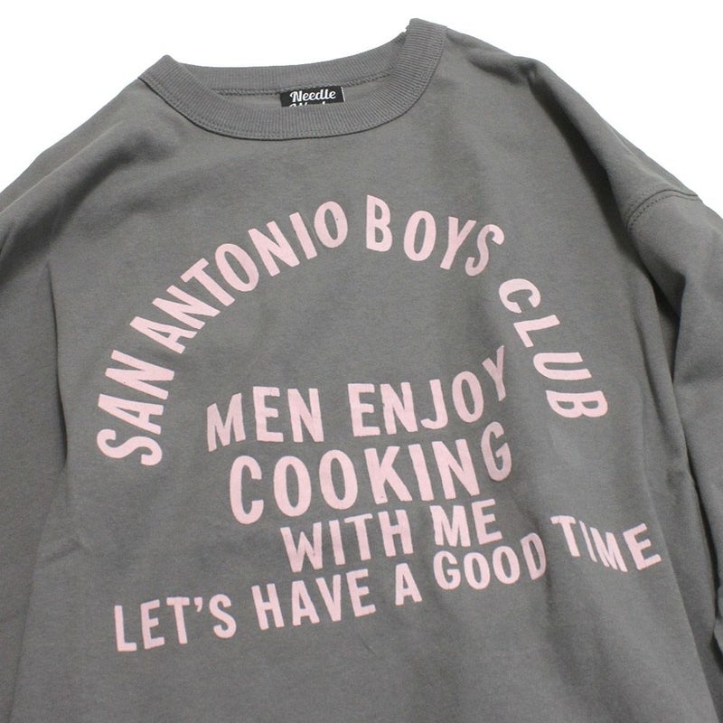 [ニードルワークス] 天竺製品裾ラウンド8分袖Tシャツ チャコール