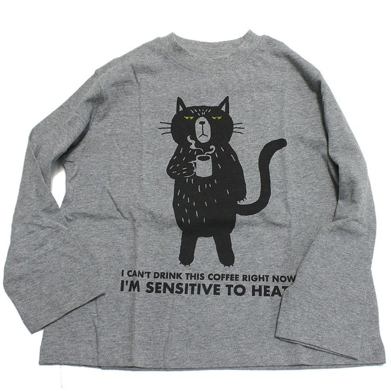 ・絶妙な表情で熱々のコーヒーを持ったネコのプリント