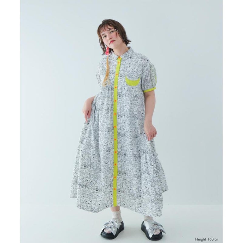 ・ネオンカラーがアクセントに効いたシャツワンピース