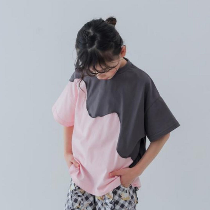 4. [ユニカ] twoピースバイカラーTシャツ チャコール×ピンク(61)