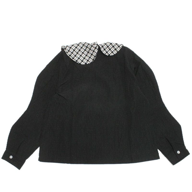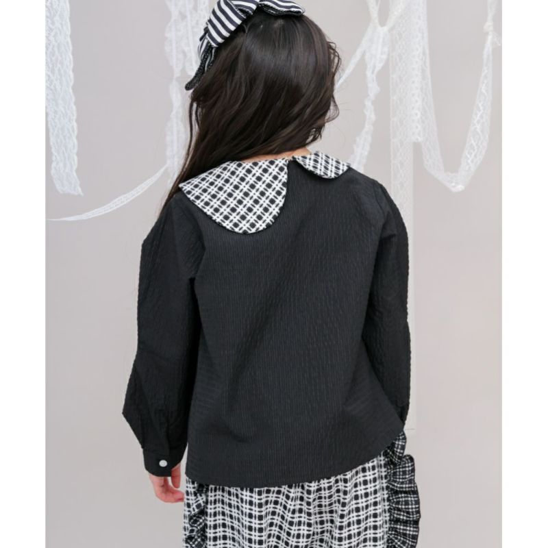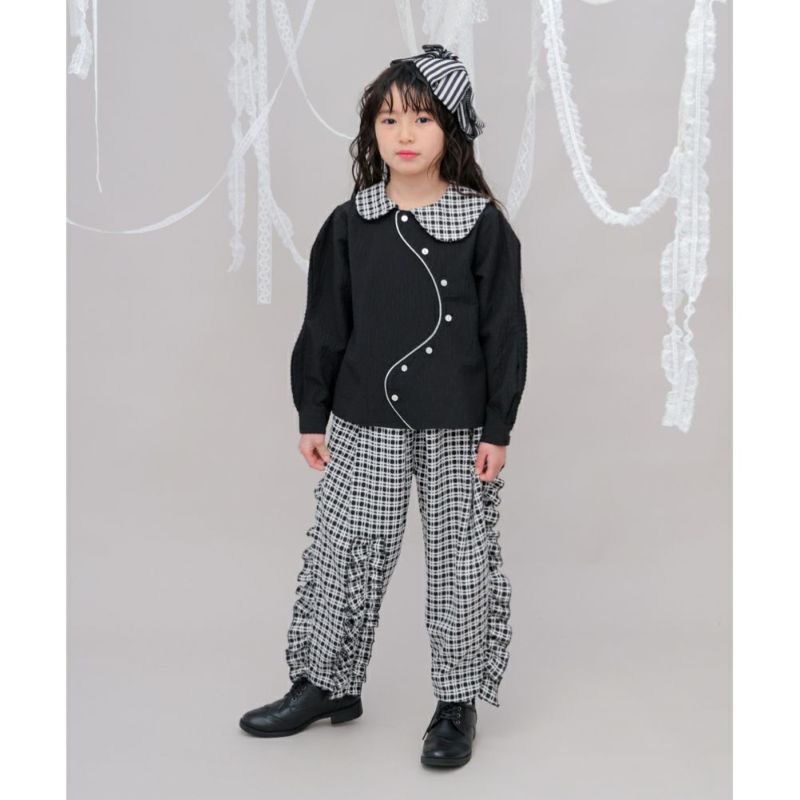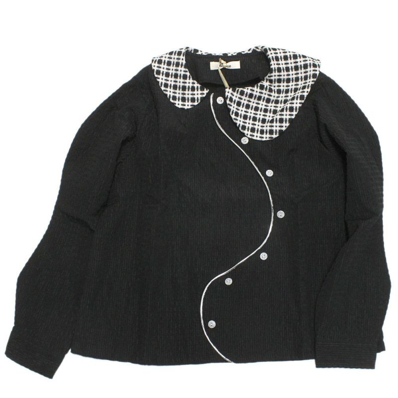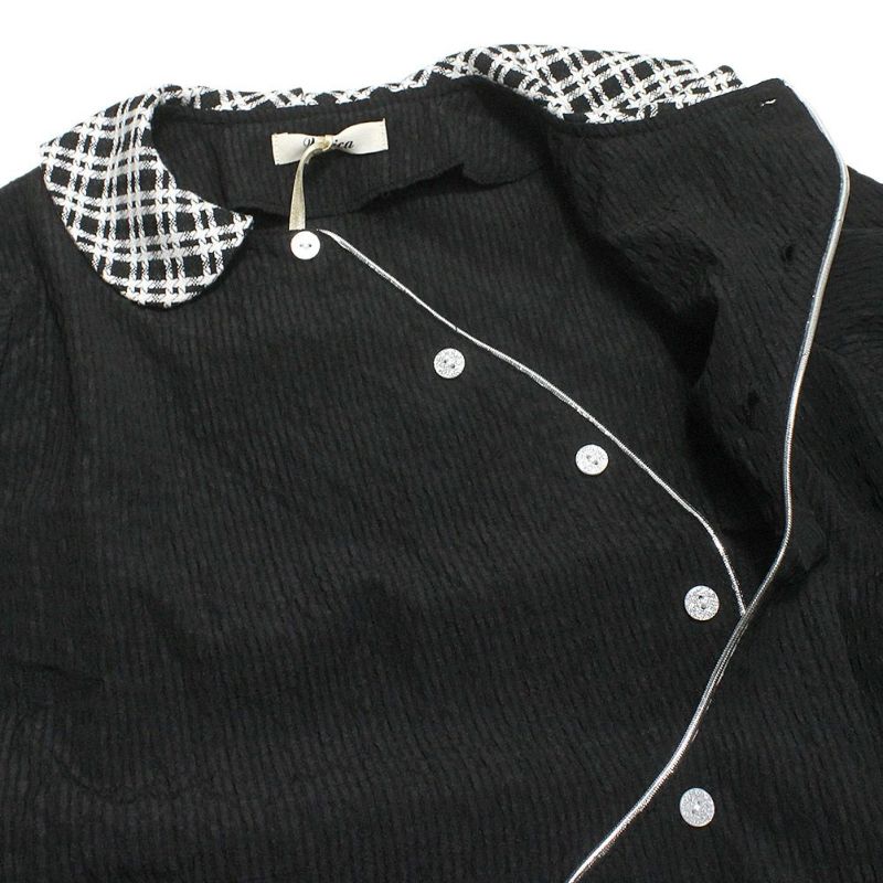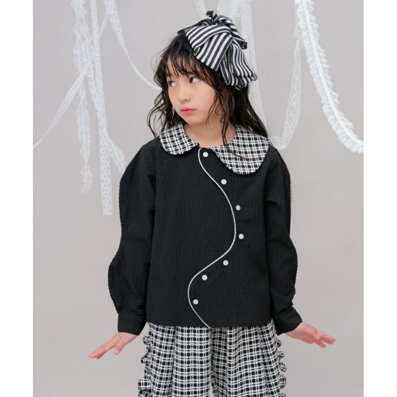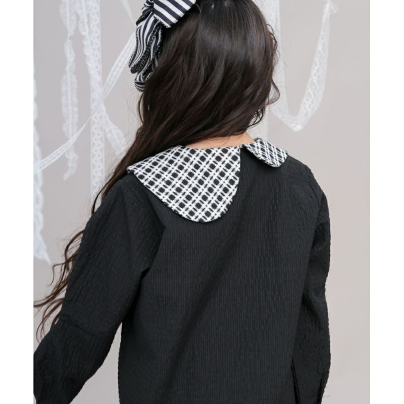 ・アシンメトリーなチェックの衿もポイント