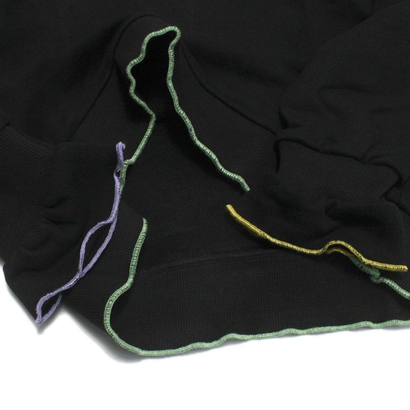 ・カラフルな糸でメロウ始末を施したトレーナー