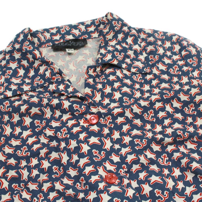・星とイカリモチーフがユニークな総柄シャツです