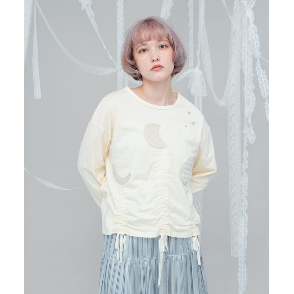 [ユニカ] moonパッチワークドローストリングTシャツ オフ(2)