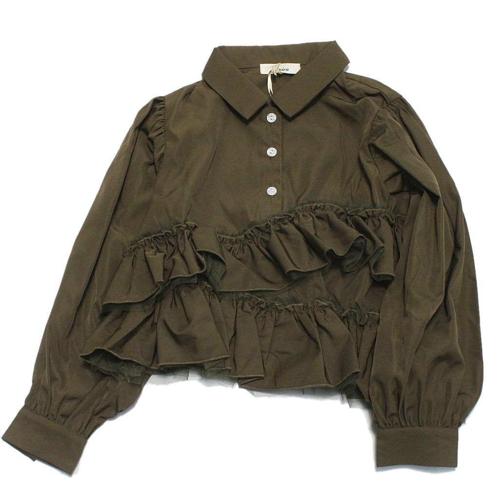 [ユニカ] ウェービーフリルブラウス カーキ(18)