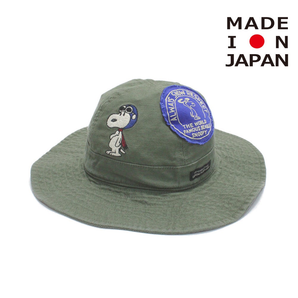 [デニムダンガリー×スヌーピー] バックサテン SNOOPY HAT 9KHカーキ
