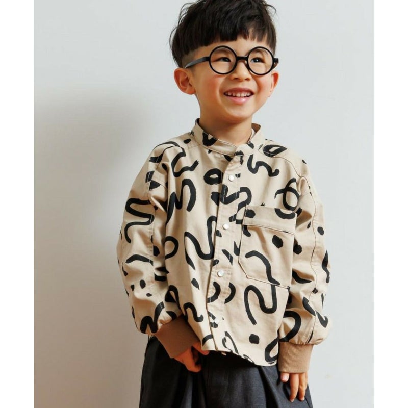 [メイクユアデイ] 総柄バンドカラーシャツ ベージュ(BE)
