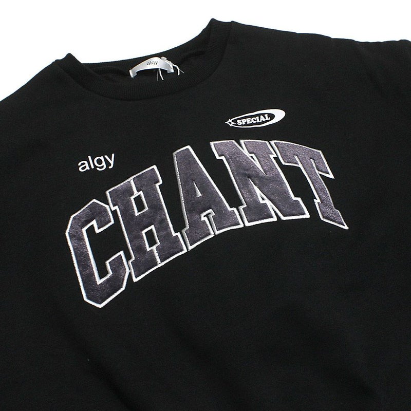 ・カレッジトレーナー風のロゴは光沢のあるベロアアップリケ