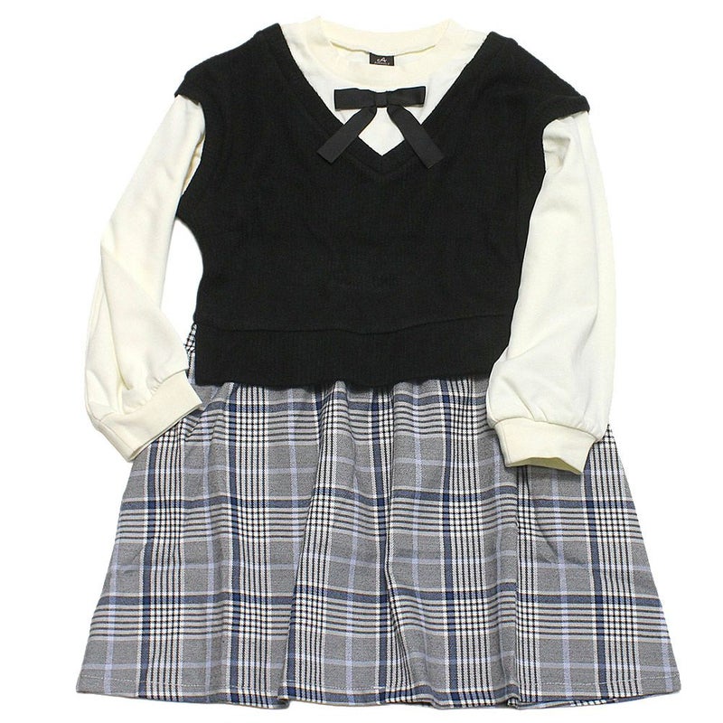 “エマーブル”のリボンチェックニットワンピース