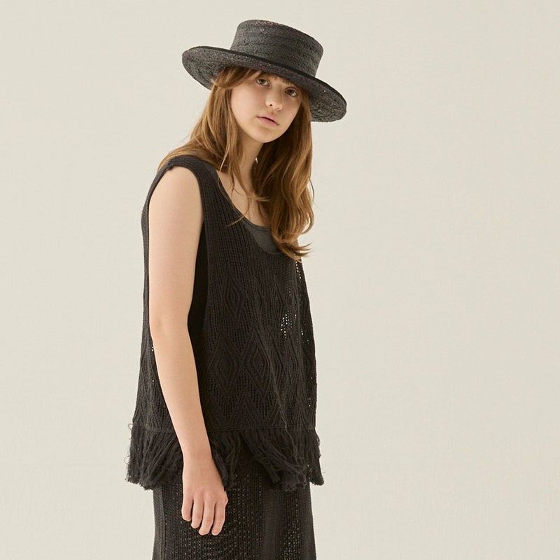 ・素朴な風合いのコットン糸を透かし柄に編み上げたニット