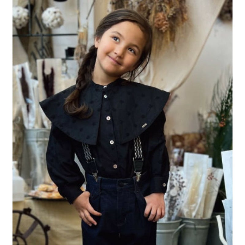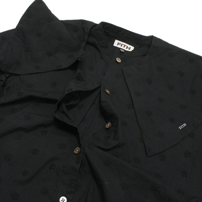 ・同色で小花柄の刺繍を施した上品なシャツ