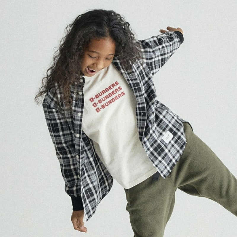 MODEL:134cm / チェックブラウン 26kg / L(130-140)サイズ着用