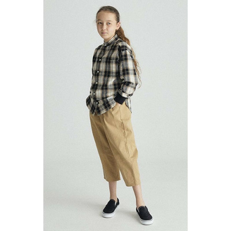 MODEL:136cm / チェックベージュ 30kg / L(130-140)サイズ着用