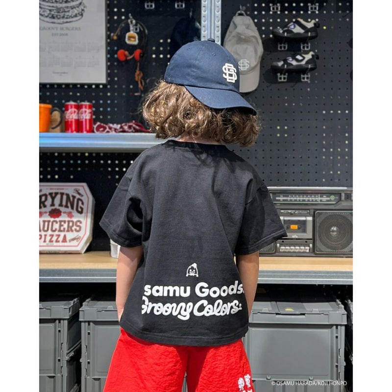 ・バックにはOSAMU GOODS×GROOVY COLORSのロゴをプリント