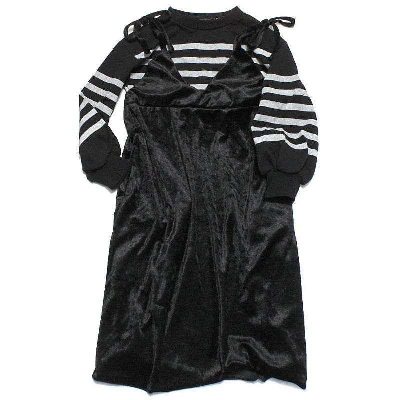 ・光沢感のあるベロア素材を使用し上品さのあるワンピース