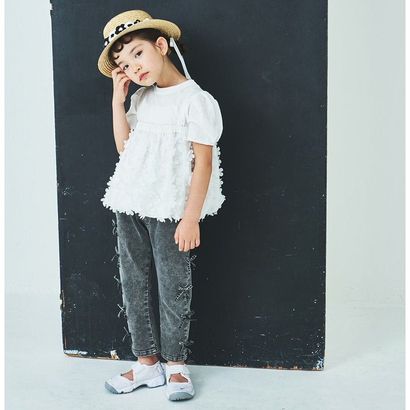 ・サイドのリボンがガーリーなデニムパンツ