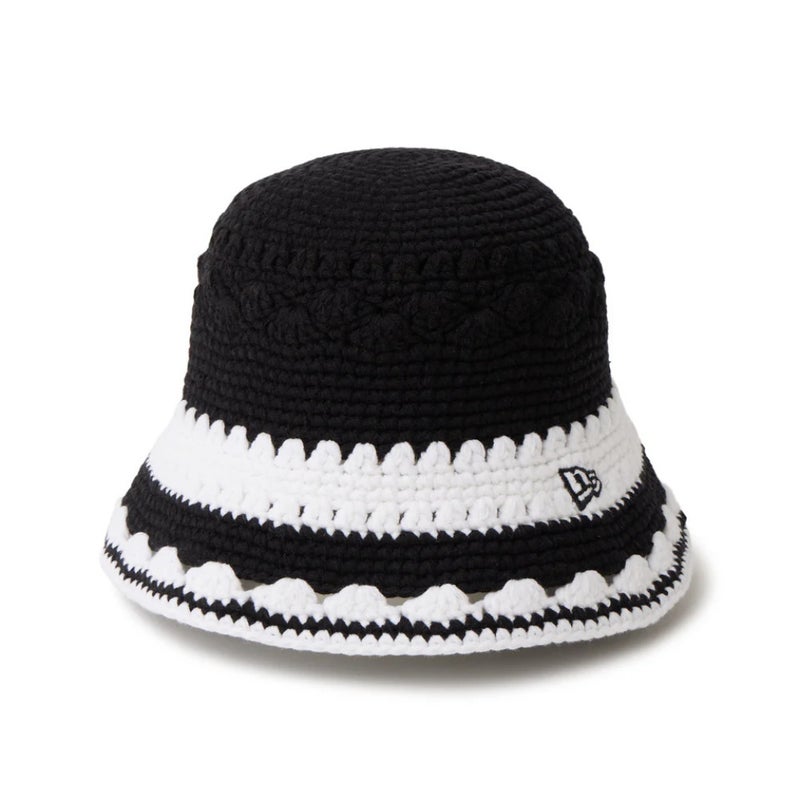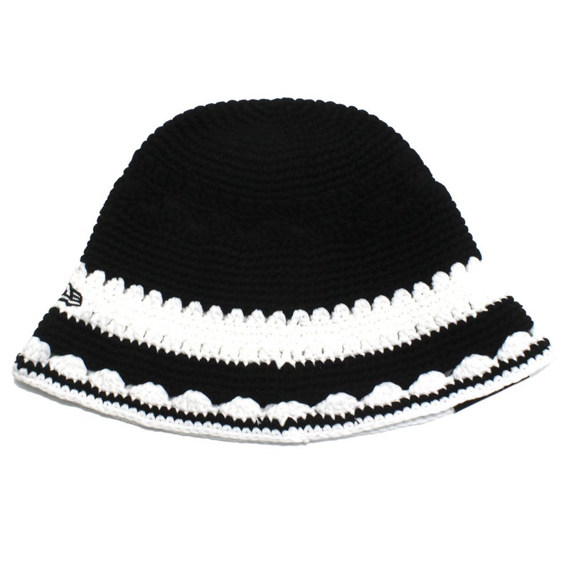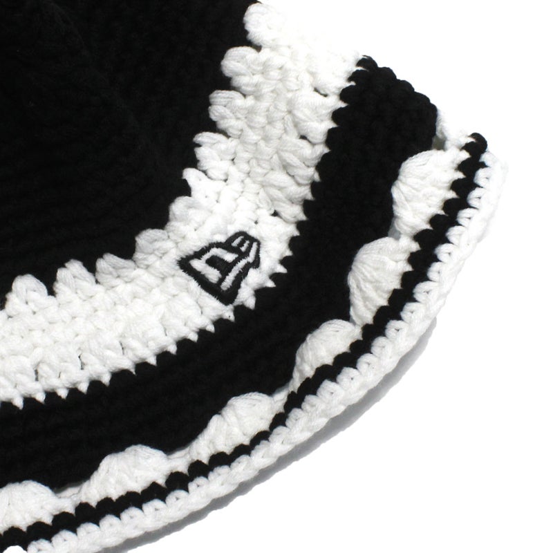 [ニューエラ] BORDER CROCHET KNIT HAT ブラック×ホワイト