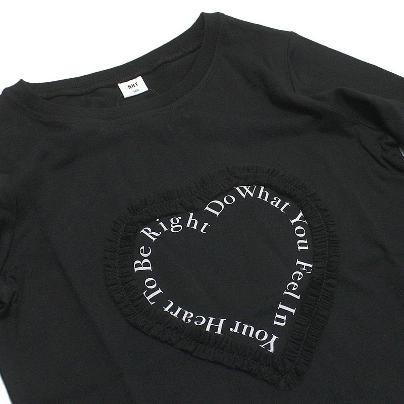 ・チュールのハートが目を惹く長袖Tシャツ