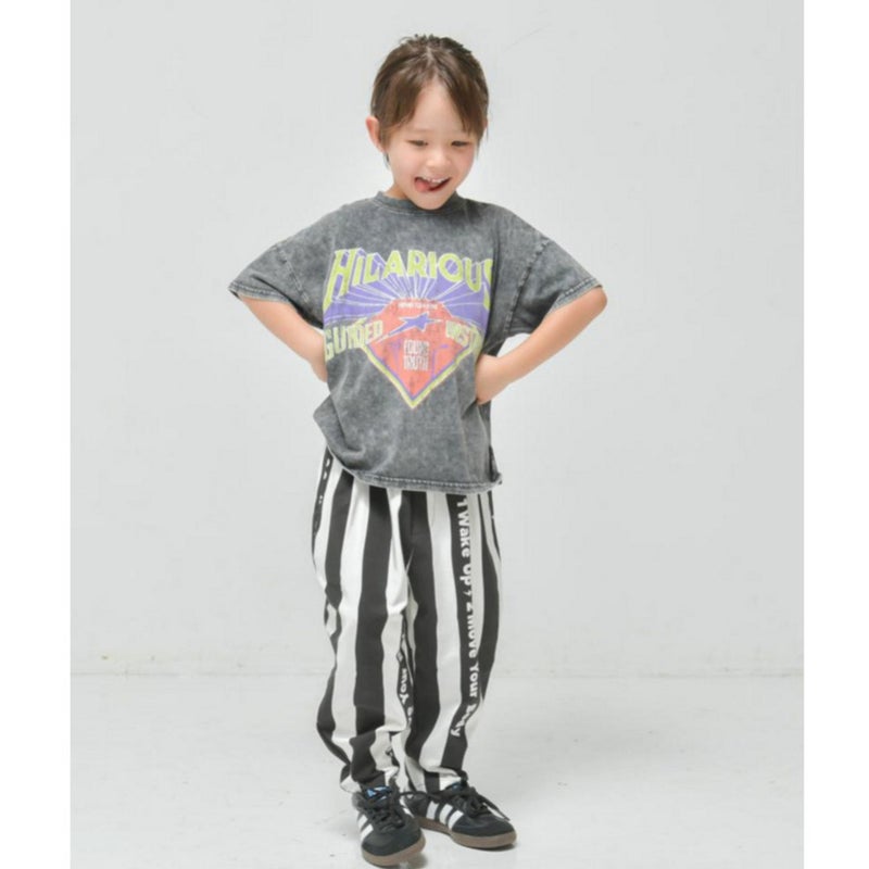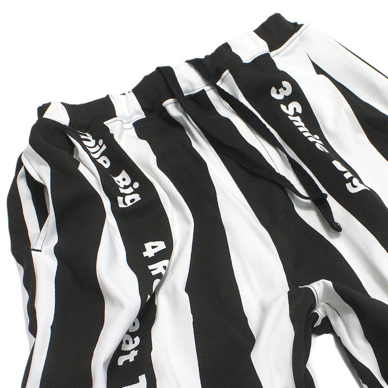 ・太いピッチのストライプにロゴプリントをプラス