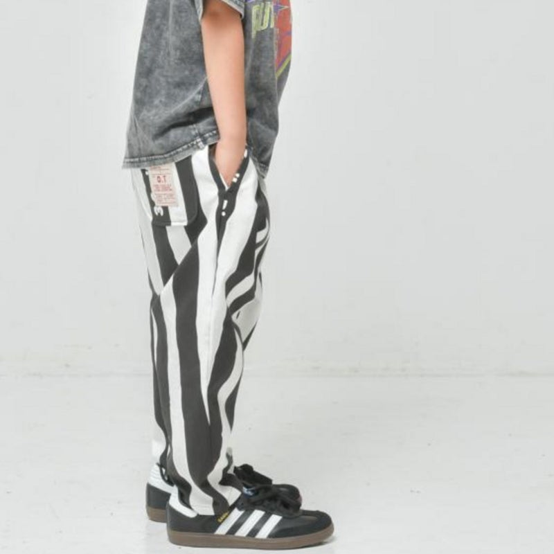 5. [オフィシャルチーム] 360度ストレッチ ストライプワイドパンツ ブラック