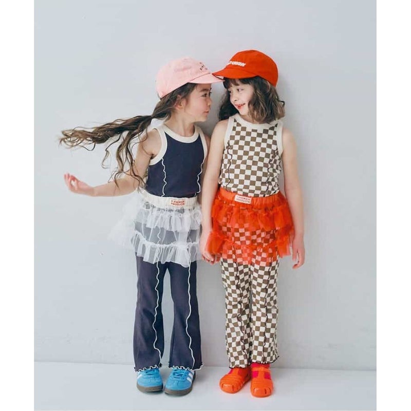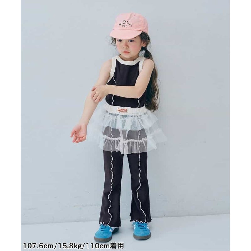 “ピードットプルミエ”の配色メロウのストレッチリブフレアパンツ