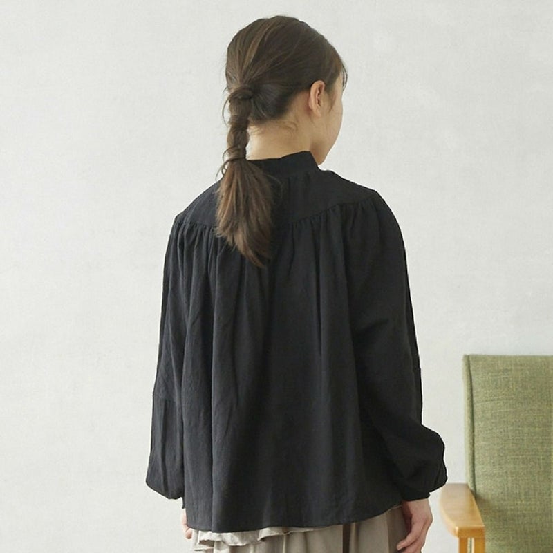 ・ギャザーで切り替えたデザインのプルオーバーブラウス