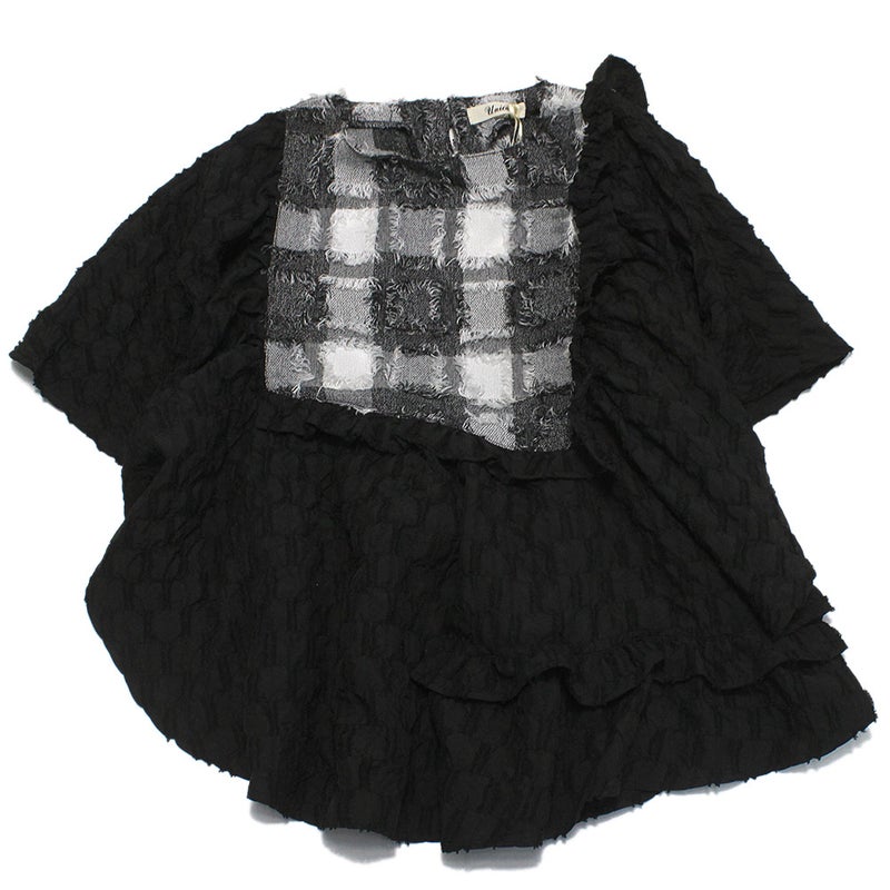 4. [ユニカ] フリンジフレアースリーブ ブラック×オフホワイト(44)
