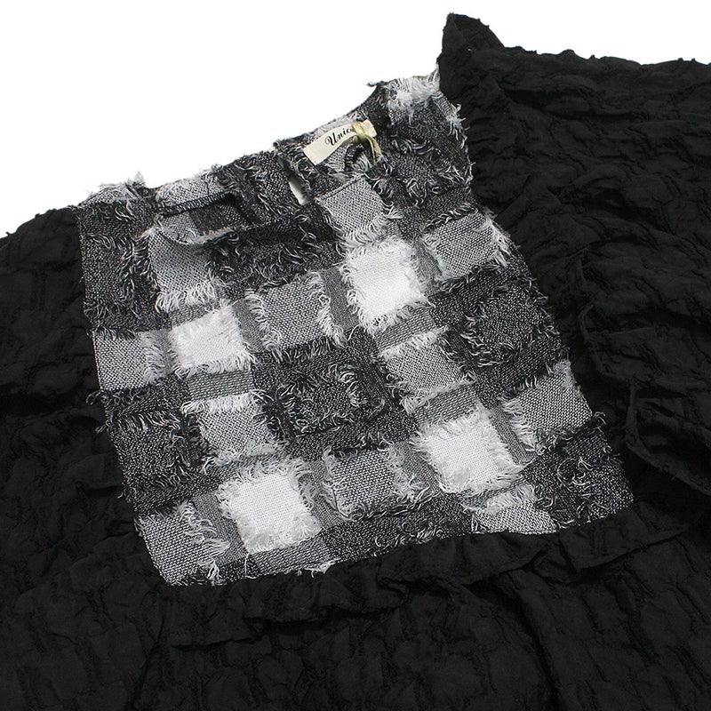 [ユニカ] フリンジフレアースリーブ ブラック×オフホワイト(44)