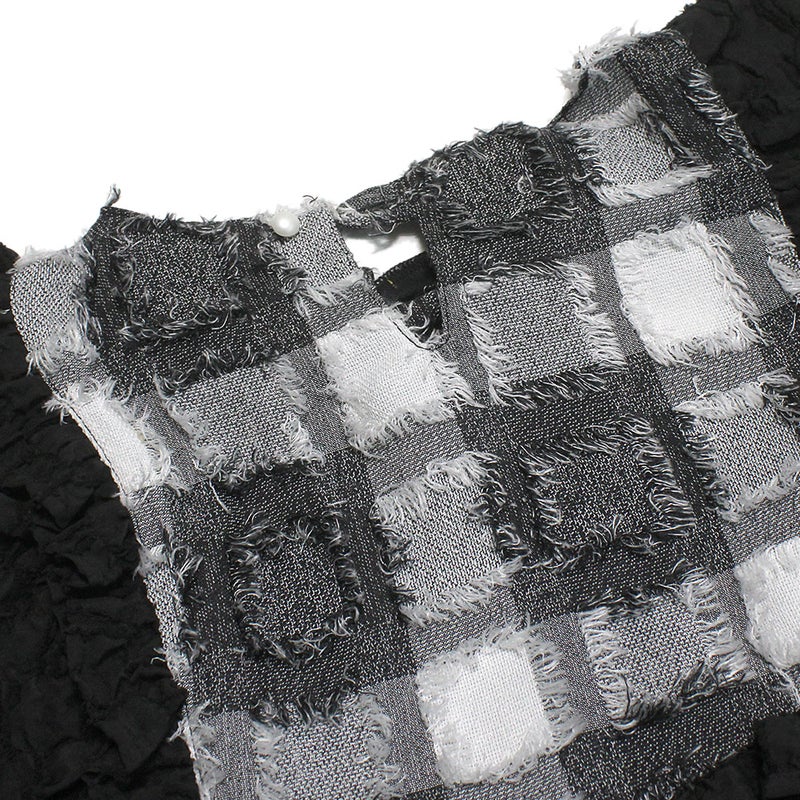 6. [ユニカ] フリンジフレアースリーブ ブラック×オフホワイト(44)