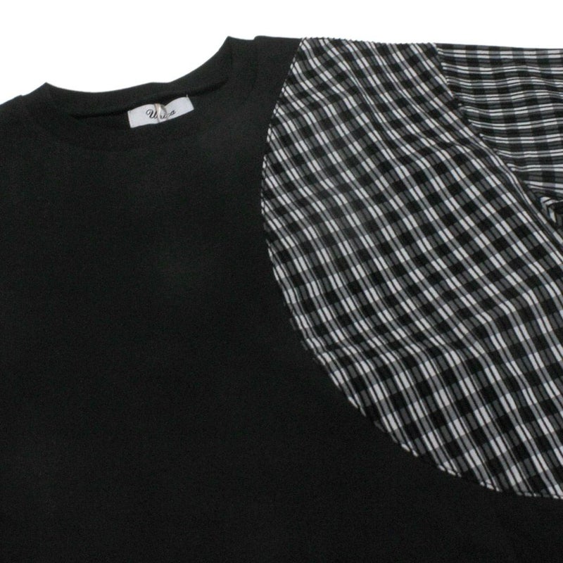 ・ギンガムチェックで切り替えたデザインのTシャツ