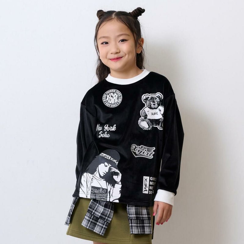 “エックスガールステージズ”のMIX モチーフ起毛トレーナー
