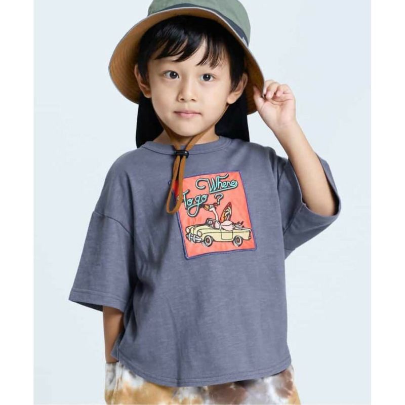 “エフオーキッズ”のアート刺繍アップリケTシャツ