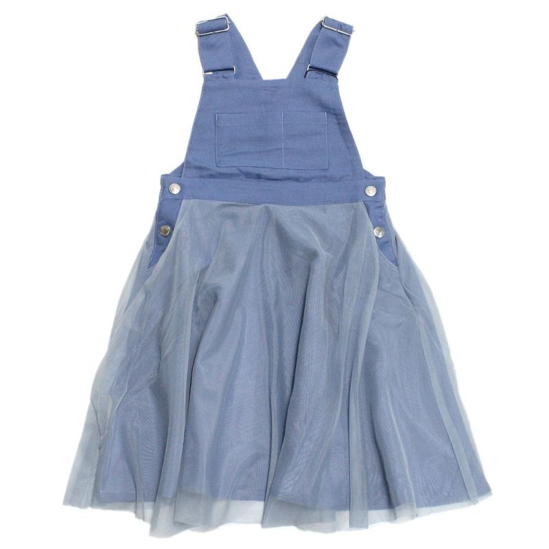 ・程よくツヤ感のあるグロッシーデニムにチュールを合わせたジャンパースカート