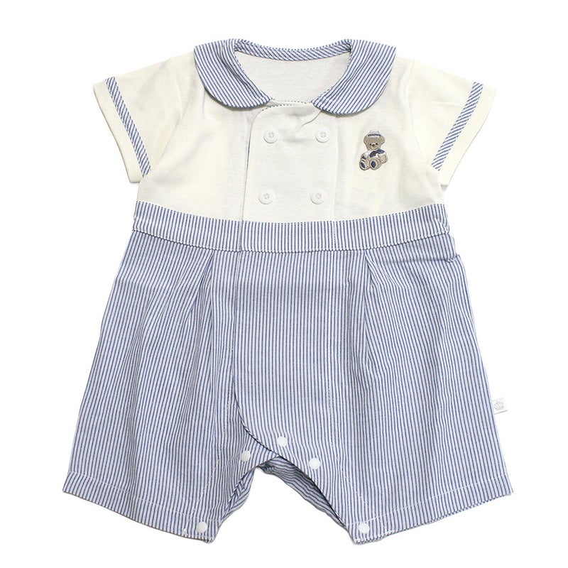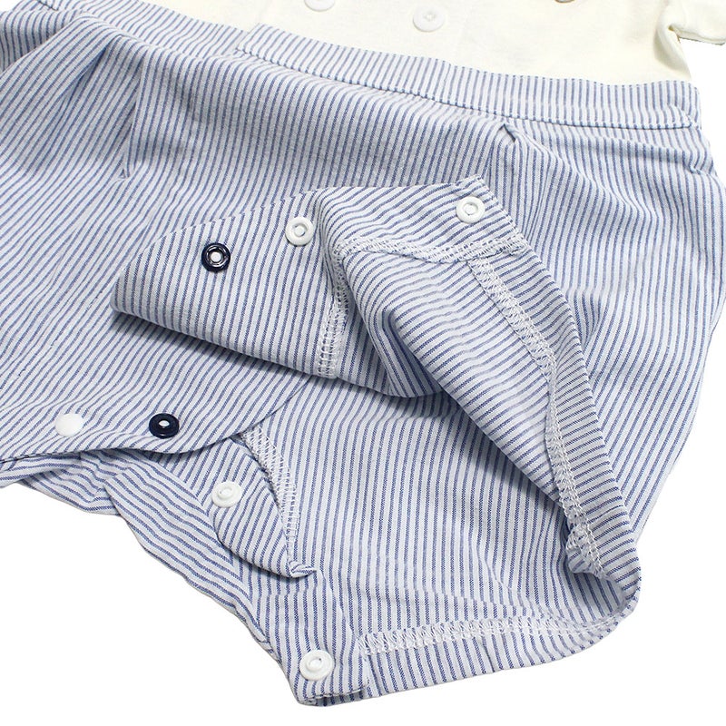 ・爽やかなボーダー柄のロンパース