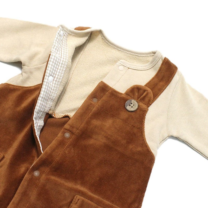 “モクモフ”のサロペット 重ね着風 カバーオール