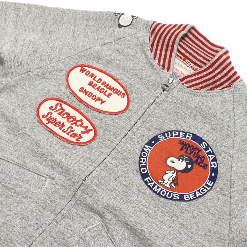 ・胸と袖についたフライングスヌーピーのワッペン