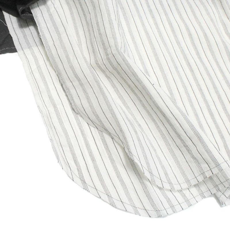 ・ストライプのタンクトップはシャツ生地でレイヤードも楽しめます