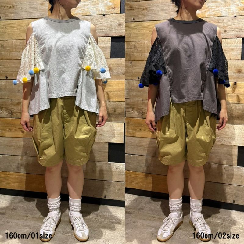 ・フリルの半袖Tシャツでも肩出しのオフショルTとしても◎