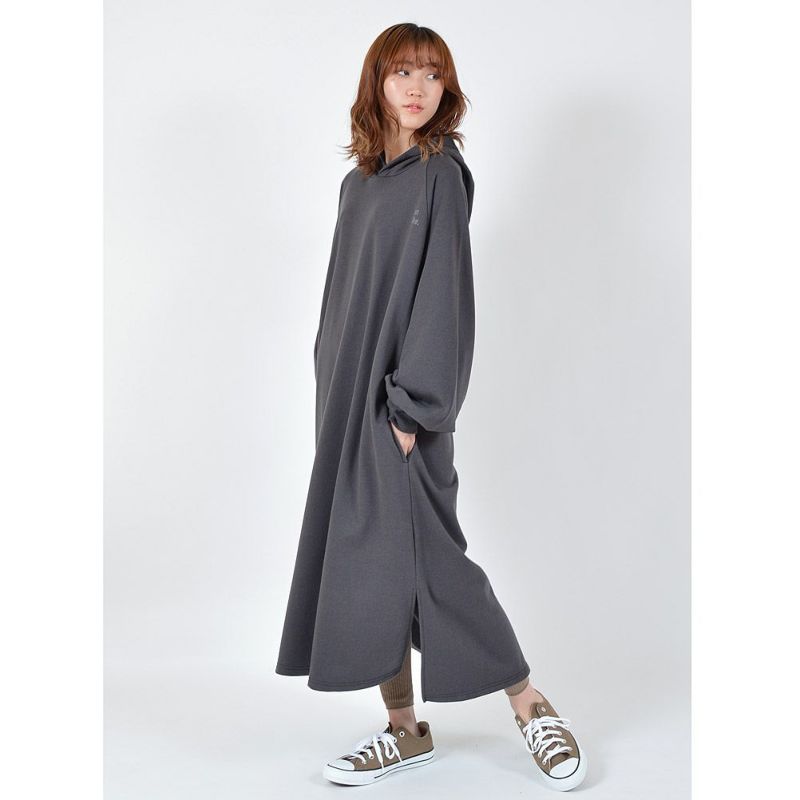 ・大きめのバックプリントがポイントのパーカーワンピース