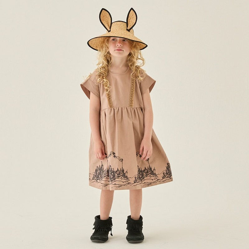 ・裾のプリントデザインが目を引くノースリーブワンピース