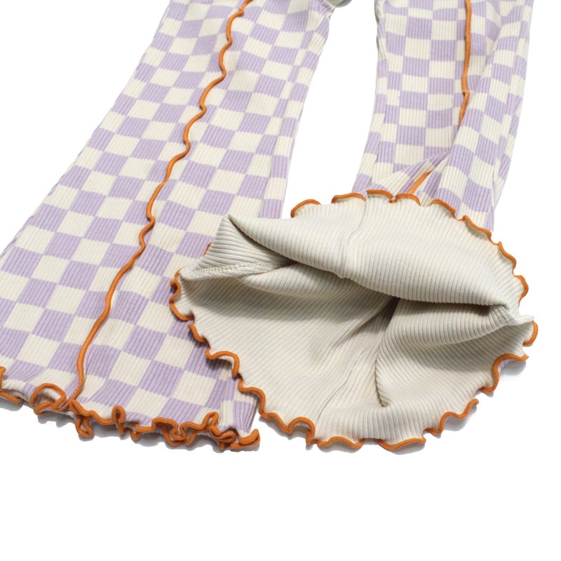 “ピードットプルミエ”の配色メロウのストレッチリブフレアパンツ