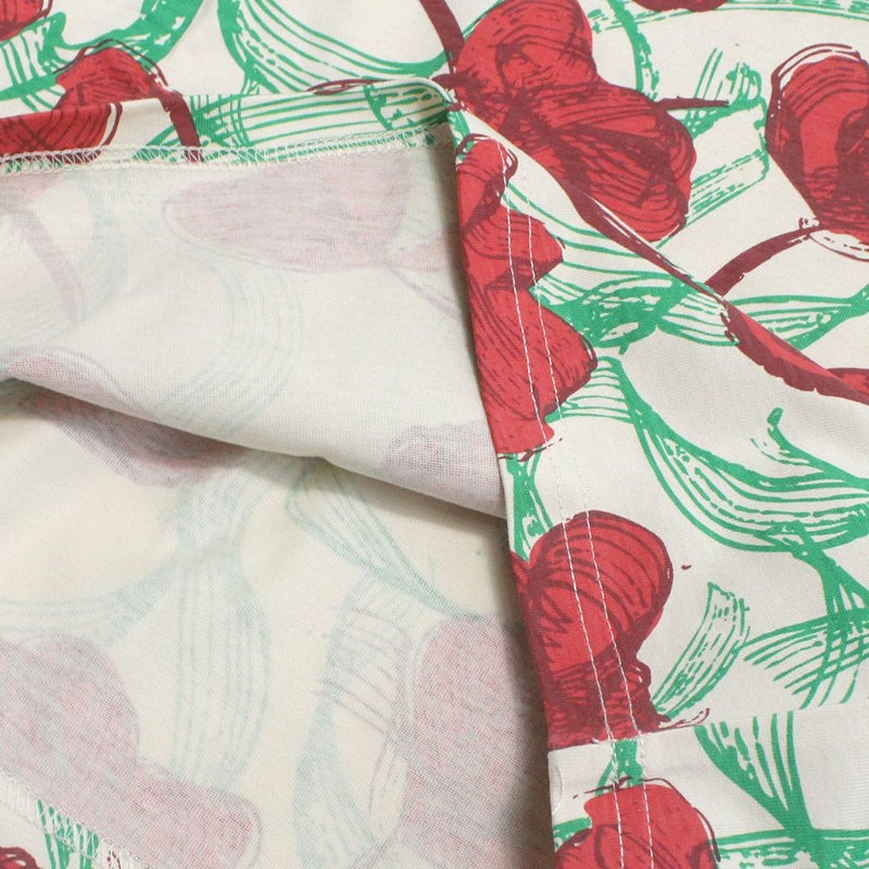 ・鮮やかな赤い花をモチーフにした総柄デザイン