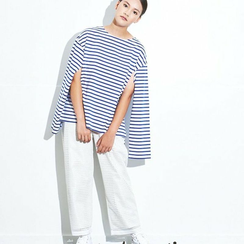 ・柔らかな肌触りのカットソー素材にメッシュを重ねたデザインパンツ