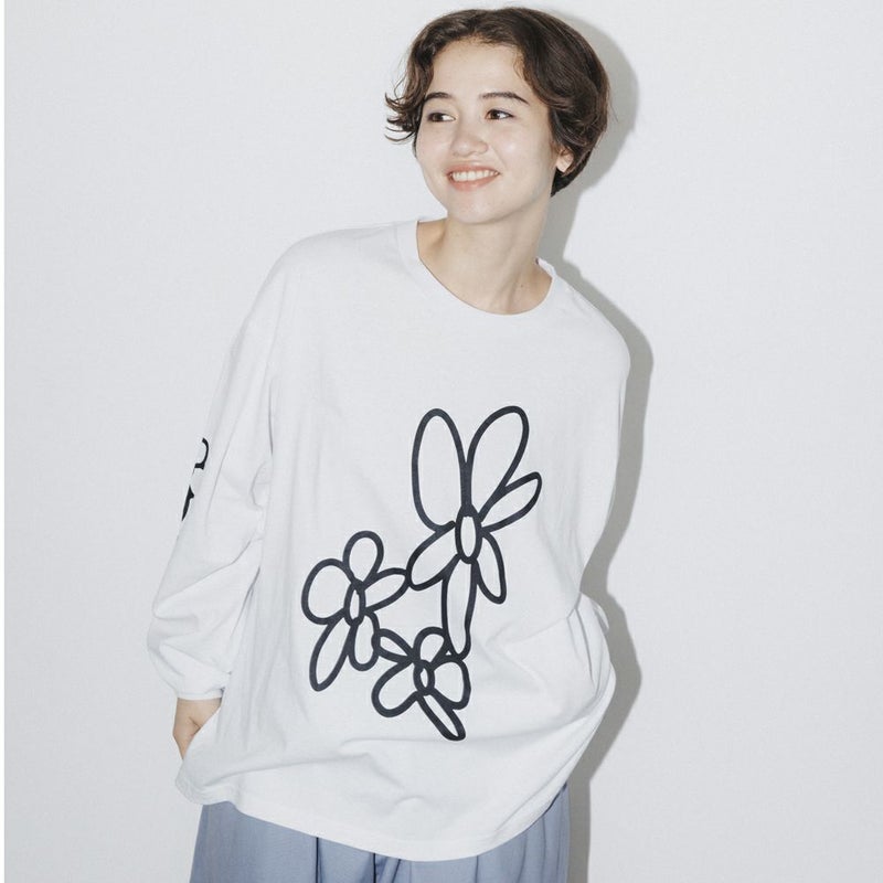 ・お花プリントをフロントと袖にON
