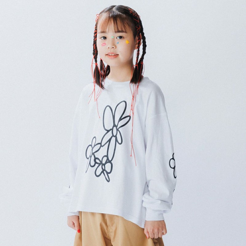 ・お花プリントをフロントと袖にON