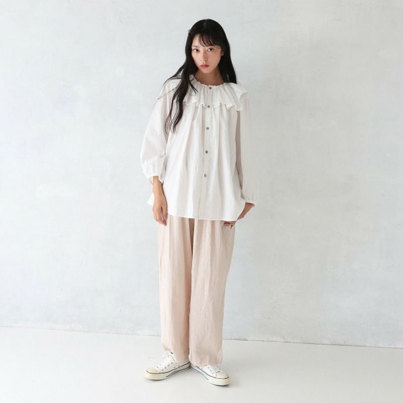・襟元のフリルがガーリーなブラウス