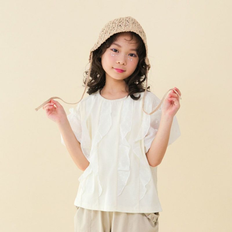 ・シアー感のあるドット生地をあしらったひらひらと動きのあるデザイン